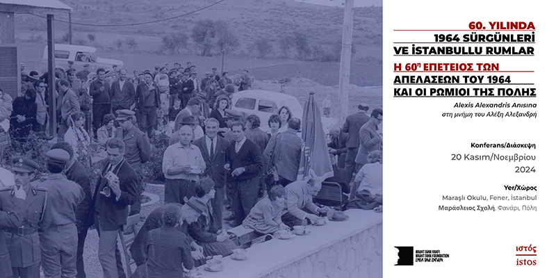 Bu yılın Nisan ayında Atina’da İstanbullu Rumların Evrensel Federasyonu ile düzenlediğimiz bir etkinliği takiben benzer bir toplantıyı İstanbul’da düzenlemek üzere Rum Vakıfları Derneği ile görüşmelere başladık. istos Yayınevi ve Hrant Dink Vakfı’nın destekleriyle 20 Kasım’da Fener Maraşlı Okulu’nda gerçekleşecek bir konferansla 1964 sürgünlerini çeşitli boyutlarıyla kamuoyunun gündeminde tutmayı amaçlıyoruz. Öğleden önceki panellerde konunun uzmanı olan akademisyenler ve yeni araştırmacılar 1964 olaylarını sosyal, hukuki, kültürel boyutlarıyla ele alacak. Öğleden sonra bir sohbet oturumu gerçekleştireceğiz ve sürgünlerin insani boyutunu, 1964 olaylarının kişisel tanığı olan İstanbullu Rumların kendilerinden dinleyeceğiz. Aynı zamanda 1964 sürgünlerini konu alan iki film yönetmenlerinin de katılımıyla gösterilecek. Amacımız, siyasi ayrımlardan ve önyargılardan uzak bir şekilde, ortak insani duyguları ve İstanbul şehrinin kapsayıcı kültürünü ve yaşam pratiğini önce çıkaran bir ortamda hepimizi etkileyen bu önemli tarihi olayın daha iyi anlaşılmasını sağlamak. Hepinizi bekliyoruz.