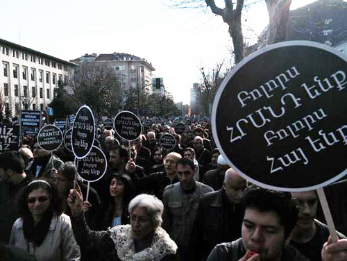 Ermenistan'da da Hrant Dink anılıyor. Dün Yerevan'da toplanan vatandaşlar, Hrant Dink'i andılar. Ermenistanlı gençler, 'Buradayız Ahparig' yazan Ermenice pankartlarla Dink mirasına selam gönderiyor.