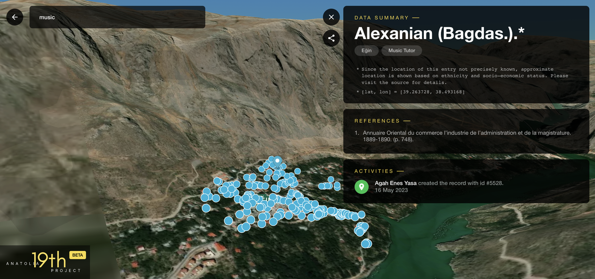 Bir süre önce BETA sürümü yayımlanan ‘Anatolia: 19th Century’, 1889 yılına ait sosyo-ekonomik Anadolu haritasında Edirne’den Ağrı’ya bu coğrafyada yaşamış, çarşıda pazarda ayakkabı satıcısı, şekerci, kasap ve sigortacı olarak geçimini sürdüren ya da şirketleriyle geniş ticaret ağlarına sahip binlerce kişiyi tanıtıyor ve izleyiciyi bir asır öncesine götüren bir navigasyon işlevi görüyor. anatolia19.com adresi üzerinden görülebilen haritayı ve projeyi, koordinatörü Agah Enes Yasa’yla konuştuk.