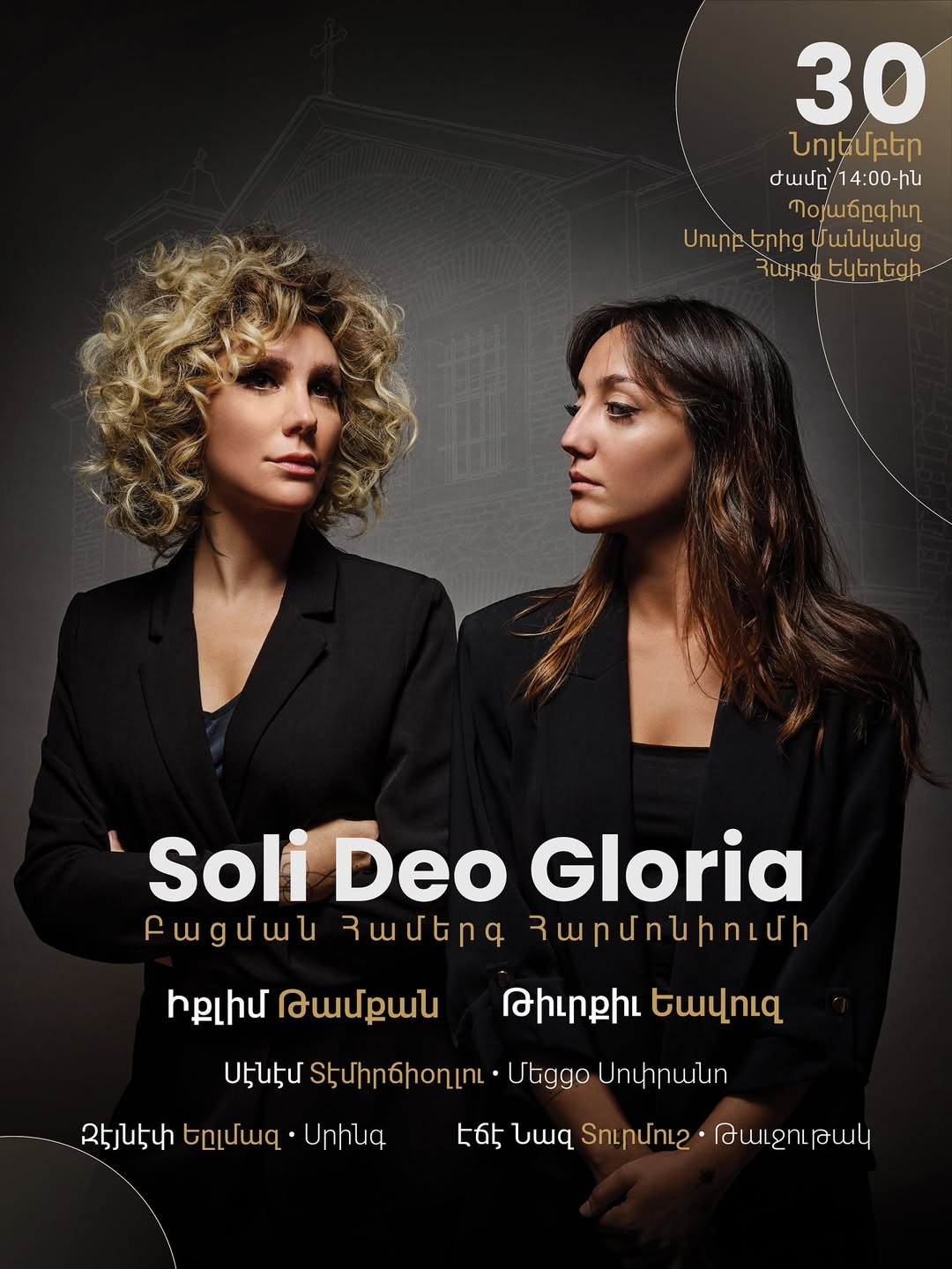Արդարեւ հանրածանօթ դաշնակահար Իքլիմ Թամքանի նուագին պիտի ընկերակցին նաեւ Թիւրքիւ Եավուզ, երգչուհի Սենեմ Տեմիրքճիօղլու, սրինգահար Զէյնեփ Եըլմազ եւ թաւջութակահար Էճէնազ Տուրմուշ։