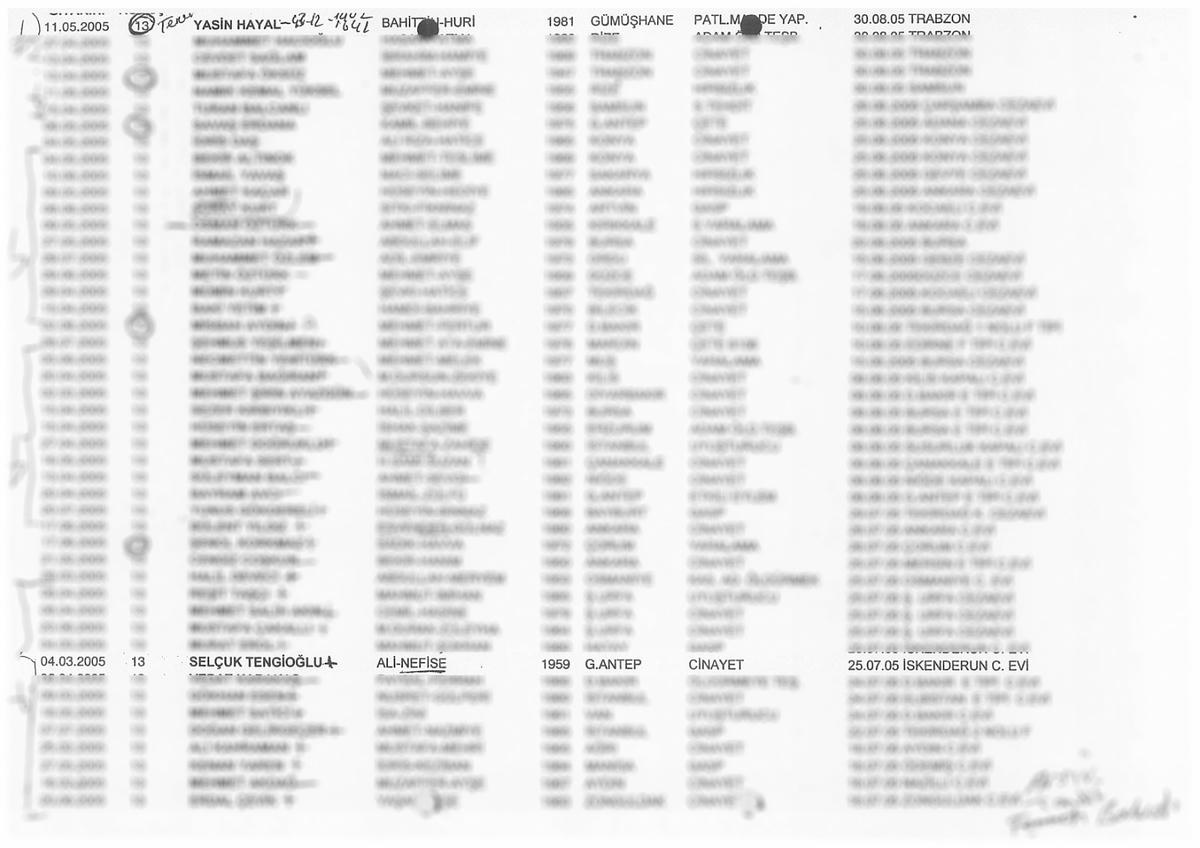 Raporun eklerinde Yasin Hayal'le cezaevinde birlikte kalan kişiler listesinde, Selçuk Tengioğlu'nun da ismi görülüyor. Aynı listede Yasin Hayal'in 11-05-2005 ve 30-08-2005 tarihler arasında Bayrampaşa Cezaevi'nde kaldığı da yazıyor.