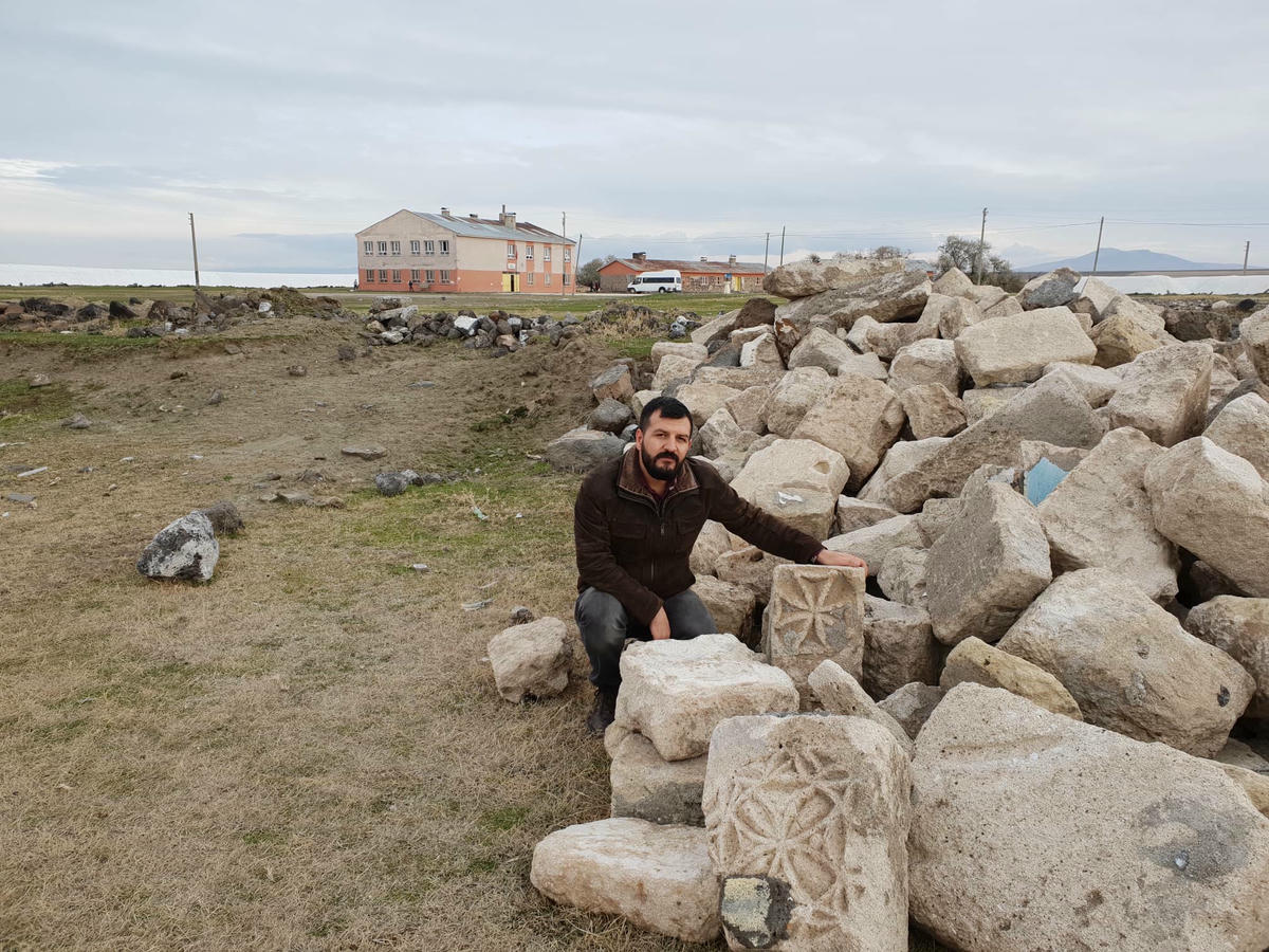 “Şimdi bu sene eski okul yıkıldı. Zengin işlemeli beyaz taşlar tekrar ortaya çıktı. Geçen hafta bir yakınımın yaşamını yitirmesi üzerine Adilcevaz’a köye gittim. Köylüler benim ilgili olduğumu bildikleri için taşların olduğu yere davet ettiler. Resimlerini çektim. Beyaz ve şekilli taşları bir kenara ayıran okulun hademesi taşları satmak istediğini söylüyordu. Satmaması için ikna ettim. Birkac yere yazdım cevap çıkmadı. Ahlat Müzesi’ni aradım. ‘Dilekçe yazın’ dediler. Dilekçeyi de yazdım . Bir sonuç çıkmadı.”