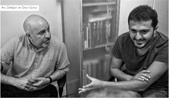 Onur: Amerika’daki ilk gösterimde Ara’nın bir arkadaşı yanıma gelip neden bu belgesele dahil oldun diye sordu bana. Neden “Bunu yapmam lazım” dedin? Hiç düşünmemiştim. Ara’yı Ağladıkça’dan bildiğimi hatırladım. Ahmet Kaya’nın Şarkılarım Dağlara albümü 93’te çıktı. Kürt-Türk savaşının en kötü zamanıydı. Gidip kaseti aldık ama teybimiz yoktu. Evde kasetleri tutamıyorduk. Arabaya gidip dinlemeye başladım. Akü bitene kadar... Ağladıkça’yı dinlediğimizde inanılmaz bir umutla dolduğumuzu hatırlıyorum o zamanlar. Bugün neden Ara Dinkjian’ın peşine düştün derseniz, galiba hâlâ Ağladıkça’nın büyüsü üzerimde. Kardeş Türküler’in Onnik Dinkjian’ın şarkılarını yorumlaması da benzer bir umut kaynağı. Bu insanlar bu şarkıları 100 yıllık bir trajedinin arkasından keşfettiler. Ara’nın dediğine katılsam da, yani elbette dinleyicinin etnik kimliği önemli değil, ama sanki Türkiye’de çalınması başka bir şey bu şarkıların.