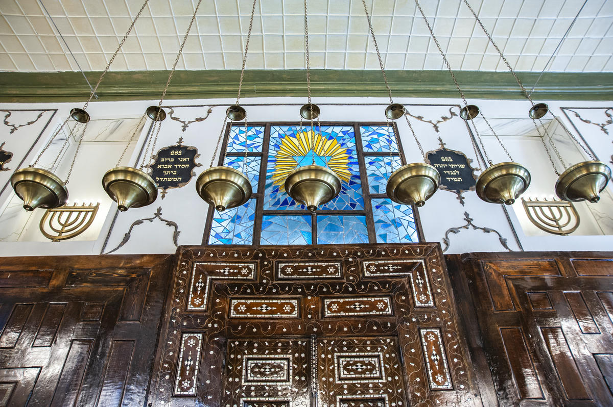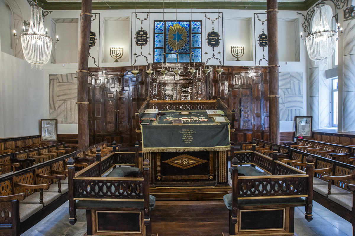 Sinagogun kapısından içeri girdiğimizde ilk olarak, hahamın Tevrat okuduğu kürsü “Teva”gözümüze çarpıyor. Tam karşısında ise sinagogda bulunan en önemli köşe olan ve iki kapılı bir dolap şeklinde, kapıları çeşitli oymalar ve şekillerle süslenen, üst kısmında da On Emir levhaları bulunan "Aron Kodeş" adlı bölümü görüyoruz. Menoralar (üzerinde yedi mum olan şamdan) ve Tevrat’tan alıntıların çizildiği tablolar ile harmanlanan antik sinagogun büyüleyici atmosferinde gezinti yapıyoruz.