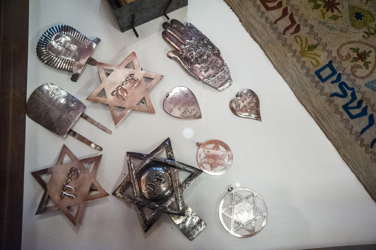 Odada sergilenen, içerisinde aromatik otlar, baharatlar veya meyveler bulunan bir tütsü kutusu olan ve özellikle Şabat'ın bitiminde yapılan Havdala töreni sırasında kullanılan “Besamim”ler, Tevrat’ın el yazısı ile özel olarak yazıldığı tomardan oluşan “Sefer tora”lar, “Tsedakah” kumbaraları, Sefer Tora’nın okunmak için koyulduğu masaya serilen 8 adet “Mapa”, Tevrat rulolarını içeren Aron Kodeş'i örten “Parohet” perdeleri ve İbranice tablolar bir hazine gibi bizi büyülüyor.