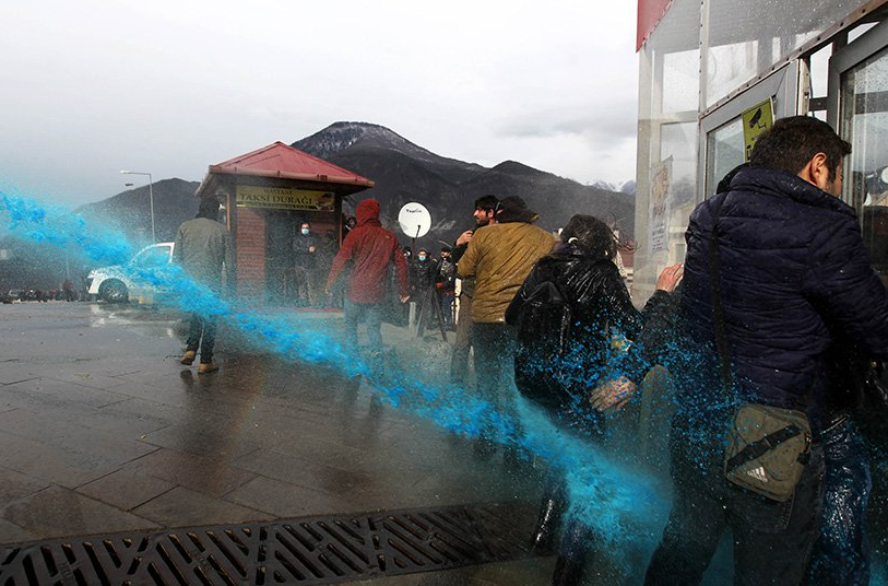 Polis gruba dağılmaları yönünde uyarıda bulundu. Ancak grubun önündeki kadınlar polis barikatını aşmak için yürümeye başlayınca, polis ekipleri önce kalkanlarla grubu dağıtmaya çalıştı. Bu sırada çok sayıda kadın ezilme tehlikesi atlattı. Bunun üzerine grubun arkasındaki erkekler de polise taş atmaya başladı. Polis de biber gazı ve plastik mermilerle saldırdı. Ayrıca TOMA grubun üzerine tazyikli su ve gaz sıkıldı. Bazı polisler copla kadınlara vururken, grubun bir süre sonra yeniden toplanması üzerine polis daha fazla biber gazı sıkmaya başladı. Gazdan ve plastik mermilerden etkilenen çok sayıda kadın yakındaki Artvin Devlet Hastanesi acil servisine taşındı. Ambulanslarda da bazı göstericilere müdahale edildi.