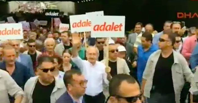 CHP Lideri Kemal Kılıçdaroğlu, Berberoğlu’nun tutuklanması üzerine, bugün saat 11.00’de Ankara Güvenpark’tan İstanbul’a “Adalet Yürüyüşü” başlatma kararı aldı. Kılıçdaroğlu, “Elimde sadece bir afiş olacak, adalet yazacak üzerinde ve yürüyüşümüzü başlatacağız. Adalet ve demokrasi Türkiye’ye gelinceye kadar’’ ifadelerini kullandı.