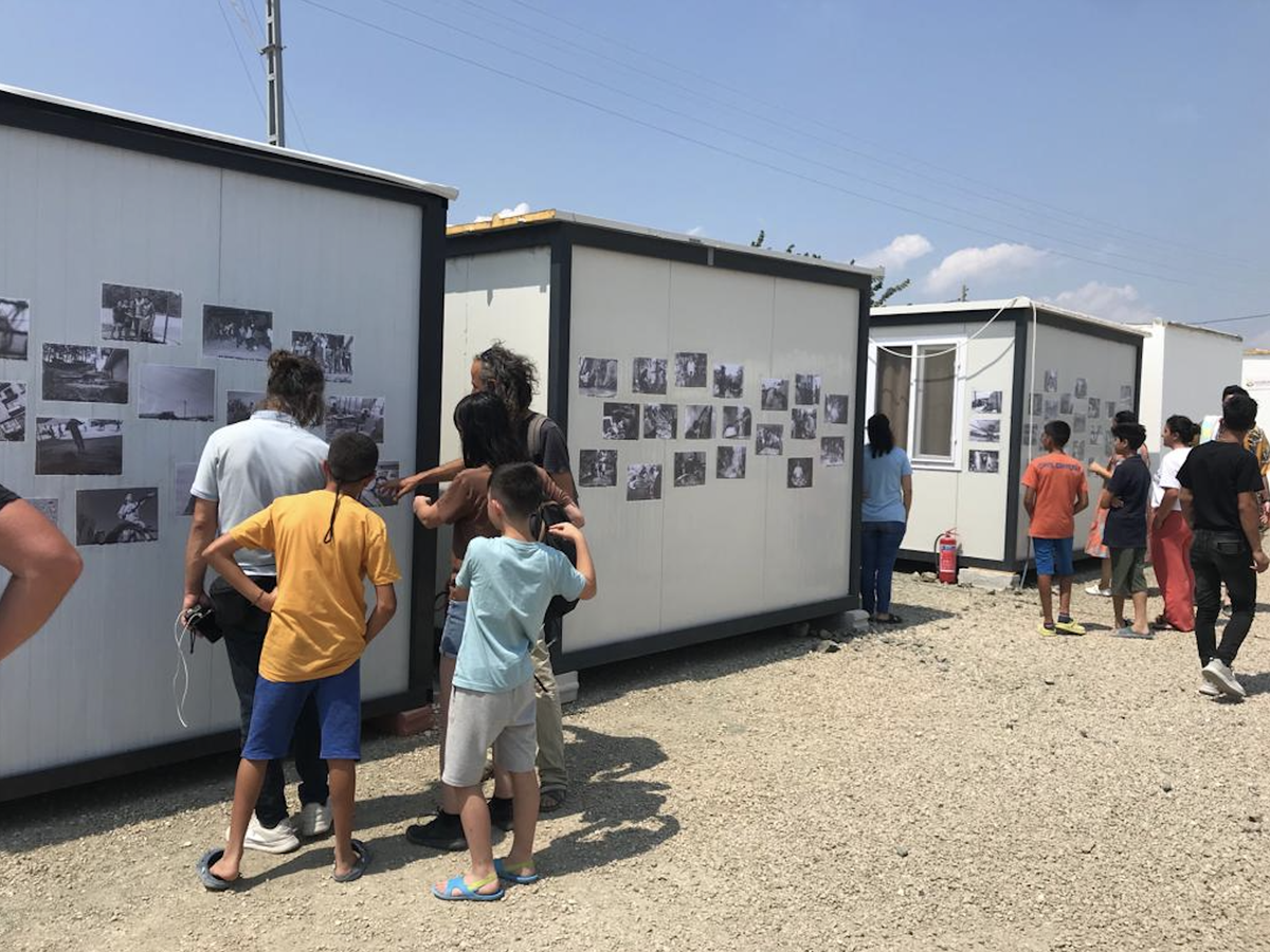 Çocukların fotoğraflarıyla çadırkentlerde açtığımız sergiler ise yetişkinlerin ve eser sahiplerinin farklı bir düzlemde buluşmalarını sağlıyor. Anne babalar, komşular, akraba, eş dost geliyor, afet sonrası yaşamı yeniden kurmaya çalıştıkları bir alanda, çocuklarla bir ‘sergi’ ortamında buluşuyorlar. Bu sergiler içinde oldukları yeni rutini bozan bir davet aslında ve fena bir etki de yaratmıyor. Çadırkentlerin çevresindeki tel çitler, prefabriklerin dış duvarları, banyo-tuvalet konteynerlerinin arka yüzü sergi alanı oluyor, bu mekânlar asılan fotoğraflarla farklı bir işlev kazanıyor, sıfatı değişiyor. (İlginçtir bu sergilerin hemen tamamı haftalarca yağmur, güneş altında kaldı, fotoğrafçıların saklamak için aldıkları dışındakiler sararıp solana kadar astığımız yerde durdu.)