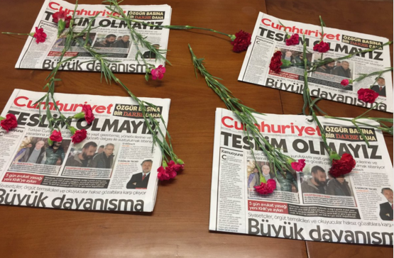 Cumhuriyet gazetesinin önünden bildiren BBC muhabiri Selin Girit, Cumartesi Anneleri basın açıklamasını aktardı. Cumartesi Anneleri yaptıkları açıklamada "Bugüne kadar yanımızda olan tüm basın kuruluşları kapatıldı. Şimdi Cumhuriyet'i de kapatmaya çalışıyorlar. Özgür basını susturmalarına izin vermeyeceğiz. Yanlarında olmak için tüm olanaklarımızı kullanmak zorundayız. Bugün Cumhuriyet'in yanında olun. Yoksa yarın sizin de kapınız çalınacak" dendi.