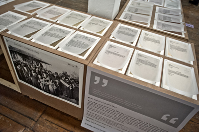 Önder Özengi: Bir bütün olarak resmî belge ve yazılı doküman sergilediğimiz için oldukça zor. Genelde sergileri görsel ağırlıklı yaparız, ama burada yazılı doküman kullanıyoruz. Bu konuda daha önce de birtakım projelerde çalıştığım için bir düşünme şekli geliştirmiştim. Karşılaştığımız en önemli sorun, 300 telgrafla boğuşmamız gereğiydi. Ziyaretçilerin tüm telgrafları okumasını tabii ki beklemiyoruz, fakat mümkün olduğunca çok telgrafın insanlara ulaşmasını hedefliyoruz. Bu dokümanları belli başlıklar altında gruplandırıp birtakım açıklayıcı metinler kullanarak, biraz daha görselleştirmeye çalıştık.