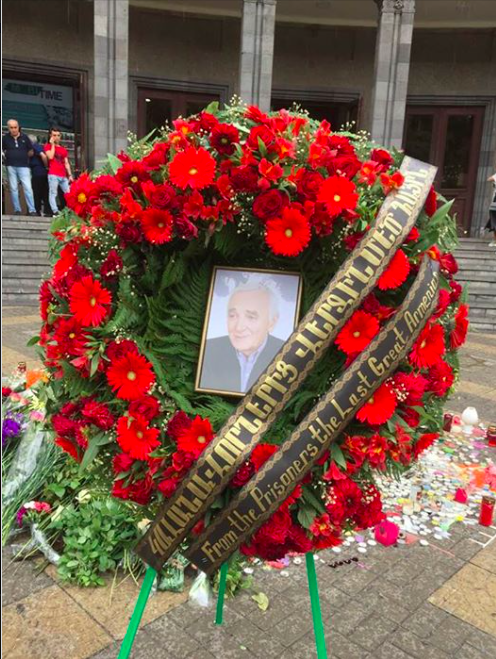 (Yerevan Cezaevi'ndeki mahkumların Aznavour için yaptırdıkları çelenk)