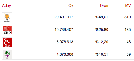 MP numbers according to Anadolu Agency: