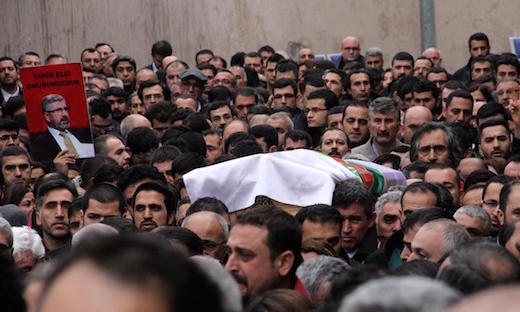 Chair of Diyarbakir Bar Association Tahir Elçi was bidded farewell with “Em te ji bîr nakin” (We won't forget you) slogan. Thousand of people walked to Yenişehir Cemetary for his burial.