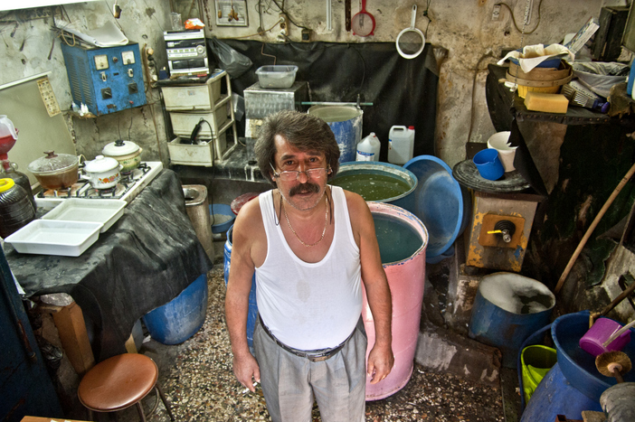 Manuel Attaroğlu hanın geçirdiği evrimin doğal tanığı. Nışan Çavdar’ın marangozhanesine bir süre sonra Teknik Döküm kurulmuş. “Bu dökümhanede Aras Yayıncılığın kurucularından Yetvart Tovmasyan ve Haçik Apelyan santrüfüj döküm kuyum üretirlerdi. Tek tek elde yapılan kuyumun kalıba geçtiği sanayinin ilklerinden oldular. Onlarla birlikte handa en hareketli, keyifli zamanlarımızı yaşadık. Zamanla bu sektörün makinelerini de üretmeye başladılar ve Topkapı’ya fabrikaya geçtiler. O dönem üst katta bir sandıkçı vardı. Üretilen her şeyi onun sandıklarına koyar, yollardık. Şimdi orası kahve oldu. Hadi gelin, şuraya oturalım biraz.”