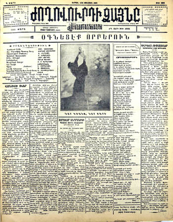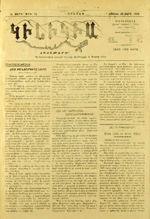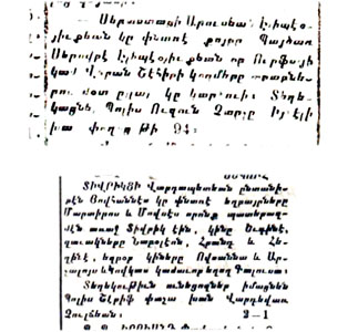Biz de bu kez hanları adres olarak gösteren duyurulardan bir seçki hazırladık. Beş gazete, ağırlıkla Cagadamard (Muharebe) olmak üzere Giligia, Jamanag (Zaman), Joğovurti Tzayn (Halkın Sesi) ve Amerika’dan Azk (Millet) gazeteleri bize öncülük edecek.