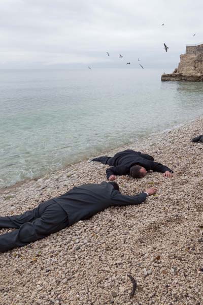 Yine en alt katta sergilenen ‘Kıyıya Vurmuş’ fotoğrafına iki farklı perspektiften bakmanın zamanı öyleyse. İkinci ve üçüncü katlarda daha geniş kadrajlarıyla yer alan bu fotoğrafta, kıyıya vuranların takım elbiseli iki adam olduğu göze çarpıyor. Bu kez kadraj onları aynı seviyeden göreceğimiz şekilde, yandan değil; onlara üstten bakıyoruz artık. Serginin tamamını gezdikten sonra, bu iki adamı, neoliberal ekonomi ve onun ürettiği siyaset biçiminin somutlaştığı bedenler olarak okumak mümkün oluyor. Belki de, Ressler’in önerdiği gibi, asıl sonu gelmekte olan küresel kapitalist piyasa ekonomisidir, siyasal ve demokratik direniş değil.