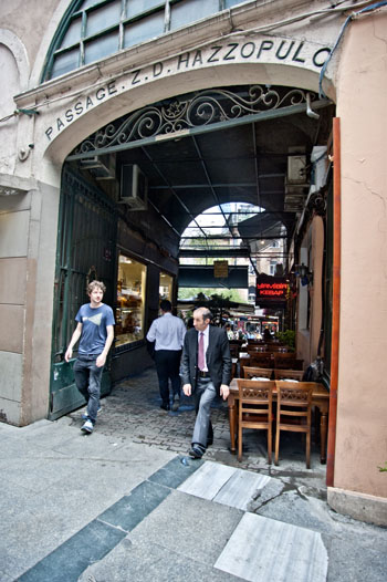 “Hazzopulo, İstanbul’da üç kapısı bulunan az sayıdaki pasajlardan biri. Bir diğer örnek de yine Beyoğlu Tünel’deki Suriye Pasajı. Avlusunun tabanı yuvarlak çakıl taşları ile kaplı. Bu Akdeniz yöresinde görülen ve ta Antik Yunan’dan beri uygulanan bir taban kaplaması tekniği, adına ‘koine’ deniyor. İstanbul’da Boğaz yalılarının ve Prens Adaları’nda köşklerin bahçelerinde çok vardı. Şimdi tabii pek çoğu yok, tahrip edildiler ya da üzerleri karo ile kaplandı. Pasajın zeminin de epey bozulmuş olması bunu kanıtlar nitelikte. Sırf bu taban kaplamasının korunabilmesi için bile bina ve avlusu tescil edilebilir.