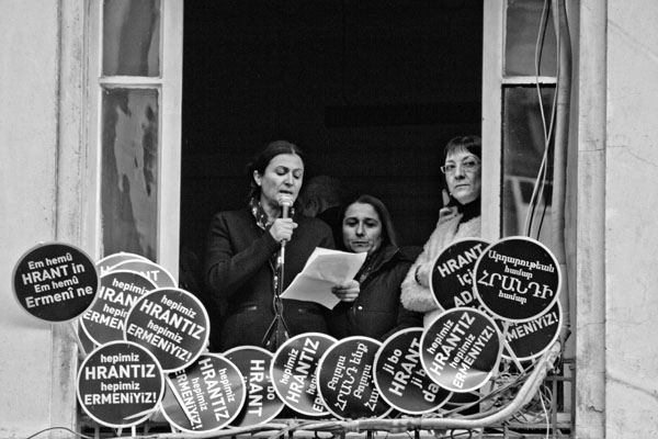 “Ben bu dünyanın camını, çerçevesini indirmek istiyorum. Başta bu Agos’un güvenlik camları var, onları indireceğim. Babamın büstü var bir tane. Onu kırmak, parçalamak istiyorum. Ben büstleri sevmiyorum, ben insanları seviyorum. Ama değil… Cam çerçeve mi indireceğiz? Siz üç yıl önce nasıl yapıldığını gösterdiniz bu işin. Ve üç yıldır gösteriyorsunuz. Asıl öyle kalabalık olup o vakarı koruyabilmek lazım. Çünkü onu yönetebiliyor devlet, kırmayı, dökmeyi; ama sizi yönetemiyor.