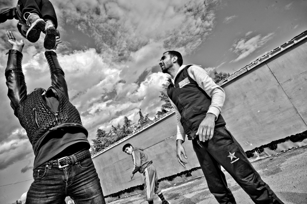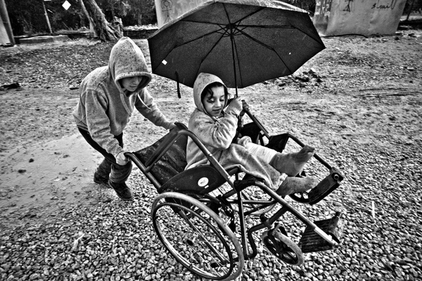 The Red Cross people gave us dry clothes to change into. We were all wet. Then, they took us to a small camp just to rest for a few hours and finally some busses took us to Moria which is another camp close to here. It was very crowded. But at least we got some food there. Soon after, a couple of European people came and took us to this camp. It is ok here, but we have no money at all. We have been here for 7 days, but we are desperate without money. And there is no one to get in touch with so they can send us some money. Our only hope is the Red Cross. If we can get to the border of Macedonia, the Red Cross will sponsor us to go to one of the European countries. Let’s see. We have to wait. But it is difficult. We can go without food, we are adults. But what about our kids? We have to get them food and drink whenever they need. They are young. They would not understand. Our only concern is their future. The kids are supposed to be in school right now. They need to get educated. We want them to be equal normal human beings: eat, dress and enjoy life like everyone. But at the moment, when I think about it, I feel that the war changed our life completely. I love Syria and if someone loves his country and is forced to leave it, he will feel like a fish out of water. I am like that fish. I am suffocating slowly because of the desperate situation we have in front of us. The war destroyed everything. Do you know that we come from a place called Jowbar. And Jowbar had been impossible to conquer for 3 years. Asad’s army had been trying and trying but the resistance in Jowbar is so strong that the army has failed.