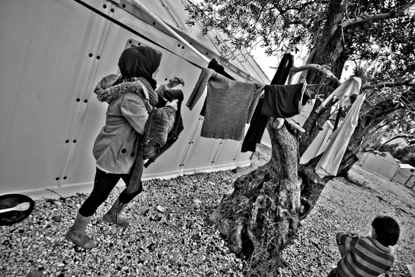 After the boat trip to this island, the people helping on the coast brought us here. It is ok. We get food and tents. The Red Cross is helping. Nothing special. It is just a place to stay. Right now, I am waiting for one of my brothers to bring my sick mother with him. They are still in Izmir. She couldn't have come on our trip because of health reasons. He will bring her by a real boat. We are waiting. Hopefully, they will come in a day or two and then we will all head for Germany or any country that takes us. We left the war, but we can start anywhere in Europe. I am not afraid, new language, new culture... But what can you do? Anything is better than war. My kids should not live this refugee life. Right now, they should be in school, learning and growing up with no worries. They destroyed the country totally, God damn them. They destroyed the future of our kids.