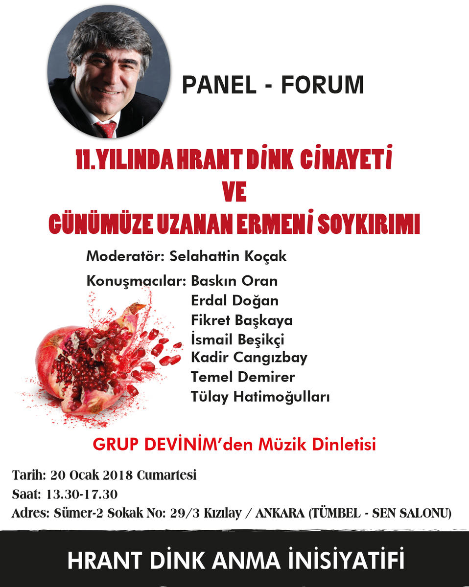 Sat 19.00’da başlayacak panelde Hrant Dink davası avukatı Hakan Bakırcıoğlu, 23. dönem İstanbul milletvekili, yazar Ufuk Uras, yazar ve gazeteci Ümit Kıvanç ve Antikapitalistler platformu aktivisti Yıldız Önen konuşacak.