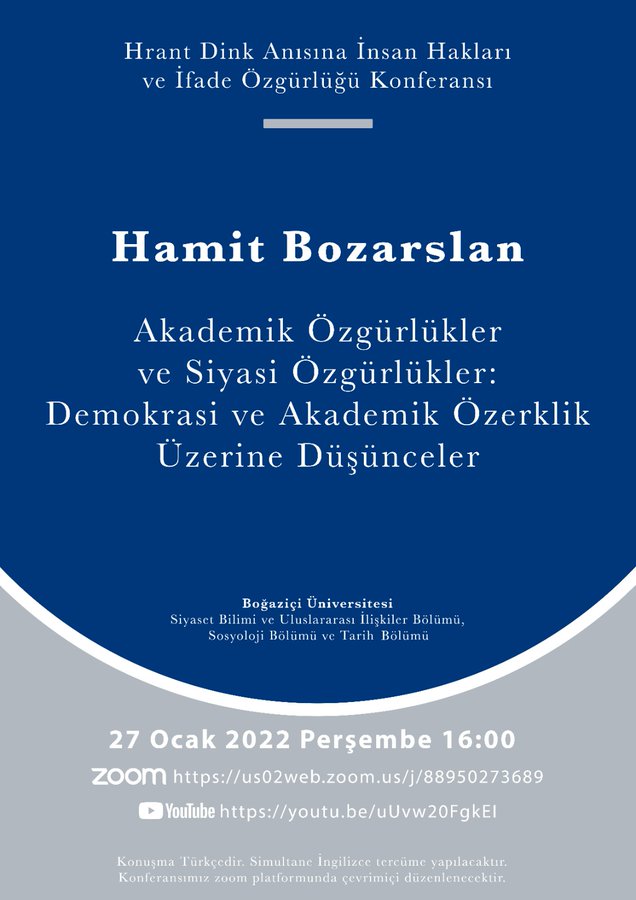 27 Ocak Perşembe günü saat 16.00'da gerçekleştirilecek konferans Zoom ve Youtube üzerinden izlenebilir.