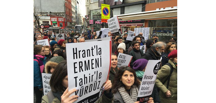 HDP Gençlik Kolları, Nor Zartonk, Kaldıraç, ÖDP, AKA-DER, DAF, EHP, Halkevleri, HDK, Yeniyol ve TKP, 14:00’te Harbiye’deki TRT Radyo binasının önünden “10 yıldır Hrant’ız adaleti kazanacağız” sloganıyla Agos Gazetesi’ne yürüdüler.