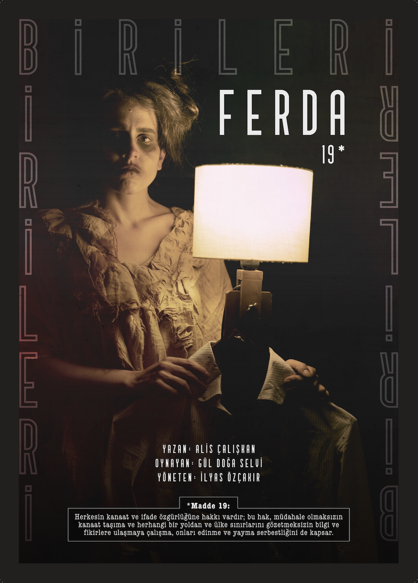 Alis Çalışkan’ın yazdığı ve Gül Doğa Selvi’nin ‘Ferda’ olarak rol aldığı kısa oyun ise bildirgenin kanaat ve ifade özgürlüğüyle ilgili 19. maddesinden yola çıkıyor. Yazar olmaya çalışan Ferda’nın yarattığı hikâye ve hikâyenin ana karakteri olan Feza, yapımcılar tarafından sansüre uğrayınca Ferda, hikâyesini ve Feza’yı yeniden yazmaya karar veriyor. Ancak bu değişimin karşısında duracak olan Feza, yaradılışına özgü cin fikirleriyle hikâyenin seyrini umulmadık şekilde değiştiriyor.