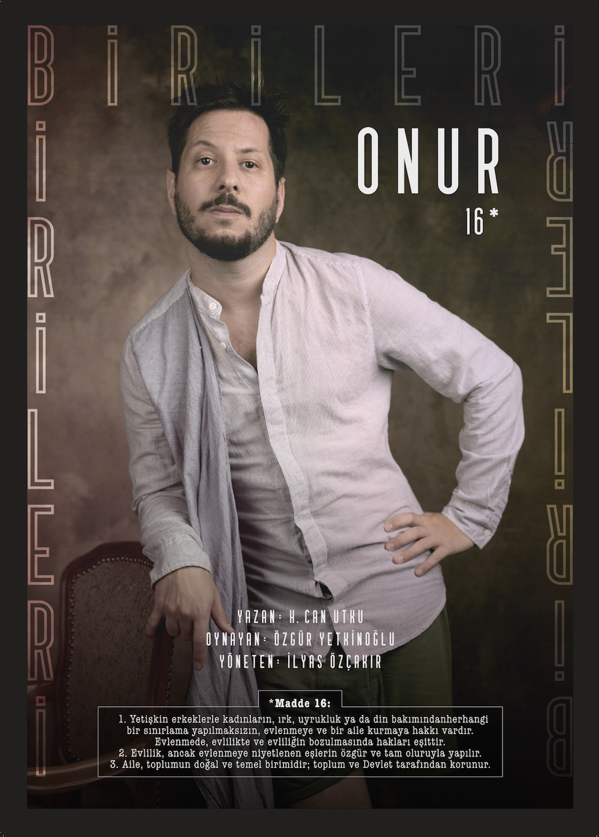 H. Can Utku’nun yazdığı ve ‘Onur’ karakterini Özgür Yetkinoğlu’nun canlandırdığı bir diğer kısa oyun, bildirgenin 16. maddesinden esinlenerek evlenme ve aile kurma haklarını işliyor. Bu oyunda Onur, ablasının düğününe hazırlanırken bir yandan da kendini düğün konuklarının kendisinin ne zaman evleneceğiyle ilgili soracakları sorulara yanıt vermeye hazırlanıyor. Oysaki kendini en yakınlarından bile gizlemek zorunda kalan Onur için evlilik zaten söz konusu değil, çünkü yasalar onu sevdiği kişiyle evlenmekten yoksun bırakıyor.