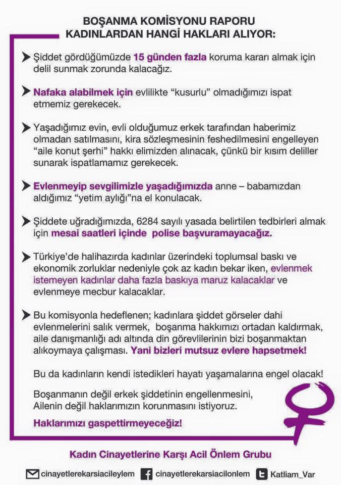 Tam adıyla “Aile Bütünlüğünü Olumsuz Etkileyen Unsurlar ile Boşanma Olaylarının Araştırılması ve Aile Kurumunun Güçlendirilmesi İçin Alınması Gereken Önlemlerin Belirlenmesi Amacıyla Kurulan Meclis Araştırması Komisyonu”nun Mayıs ayında yayımladığı raporu kadın örgütleri tarafından yoğun olarak eleştirilmişti. Örgütler, katılım mekanizmasının işletilmediği raporu kadın hakları açışında bir ‘geri adım’ olarak değerlendirmişti.