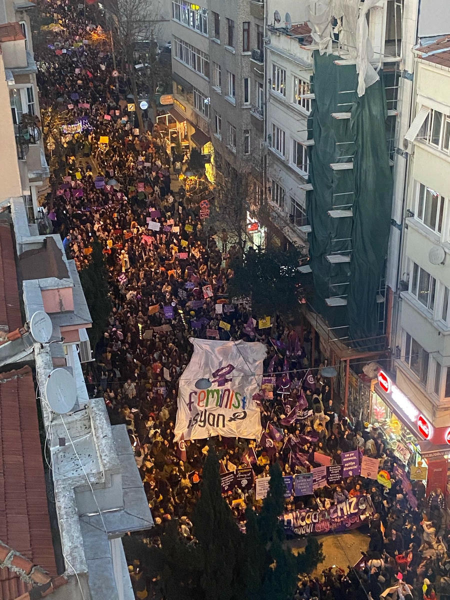 Bugün biz burada, kendi hayatlarını ve dünyayı değiştirme gücünü feminizmde bulan binlerce feminist olarak sokaklardayız. Yüzyıllardır olduğu gibi şu an da, dünyanın her yerinde mücadele eden, patriyarkaya karşı direnen kadınlardan aldığımız güçle bir aradayız.