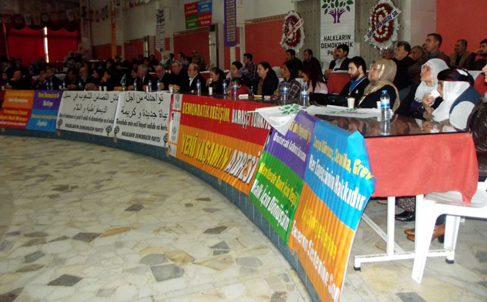 Halkların Demokratik Partisi (HDP) Hatay 1. Olağan Kongresi, Bedircan Düğün Salonu’nda gerçekleşti. İl Başkan Adayı Mehmet İnsan başkanlığındaki 16 kişilik İl Yönetim Kurulu Asil Listesi ile 20 kişilik Genel Merkez Kurultay Delegeleri’nin belirlendiği Kongre’ye; 2013 Gezi eylemlerinde yaşamlarını yitiren Ahmet Atakan ve Ali İsmail Korkmaz’ın aileleri, HDP Mersin Milletvekili Ertuğrul Kürkçü, sendika-STK ve cemaat Liderleri ile delegeler katılım gösterdi. HDP’nin 2015 hedeflerinin paylaşıldığı Kongre’de konuşmalar üç dilli, Arapça, Kürtçe ve Türkçe yapıldı.