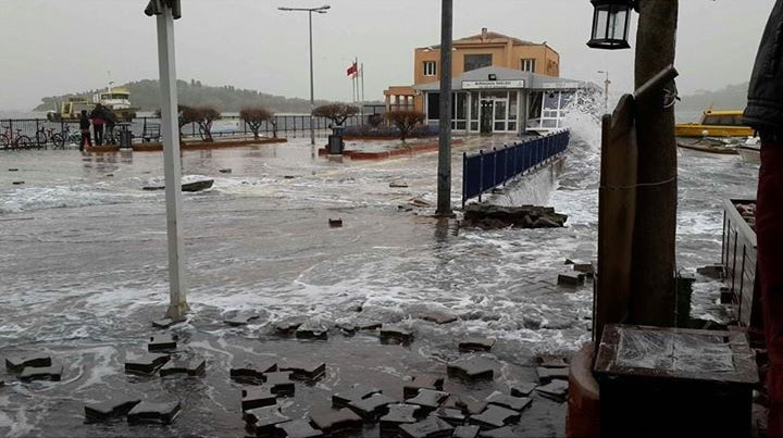 Büyükada ve Heybeliada'da da büyük dalgaların etkisiyle sahil kenarında hasar meydana geldi.