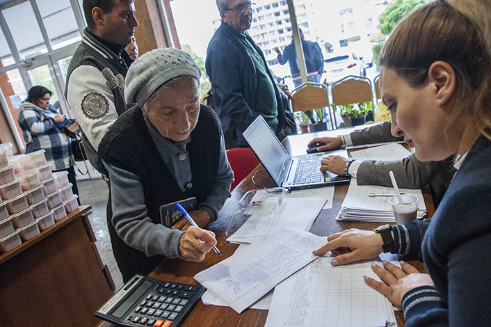 As Armen was telling us all about these, people were already coming to the municipality building to get their rations for the day. In this way, we found the opportunity to get into direct contact with people. An old couple came quietly. They first collected their food ration, then located their names on the ration list and signed the empty field. They seemed to have come to terms with their circumstances. They had no intention of asking for more, nor did they have the energy to strive to get it. We were hesitant to ask too many questions in fear of hurting their dignity. Our questions might have been overwhelming for these old people. Yet, they still expressed their heartfelt gratitude for the treatment and welcoming approach they received. Who knows, maybe they have relatives or even children in distant lands. I didn't want to bring up these topics. The exhaustion on their faces was quite telling already.