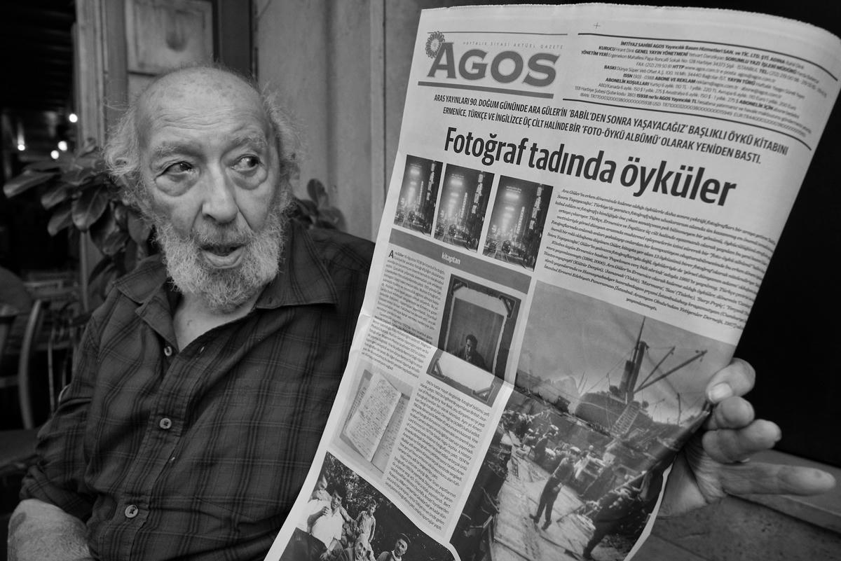 Yardımcısı Fatih Aslan’ın getirdiği Agos’ un son sayısında Ara Güler’e ayrılan tam sayfa da ona ayrı bir doğum günü hediyesi oldu.