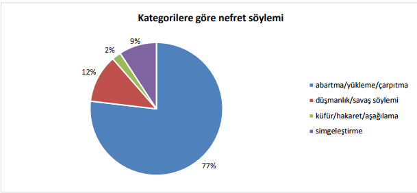 Rapora göre, ulusal, etnik ve dini grupları hedef alan 1910 köşe yazısı ve haberde 48 farklı grup hakkında 2466 adet nefret söylemi içeriği yer aldı.