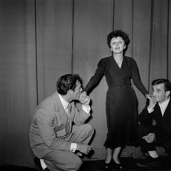 Aznavour (sağda) ve Edith Piaf ABD'li aktör Eddie Constantine ile