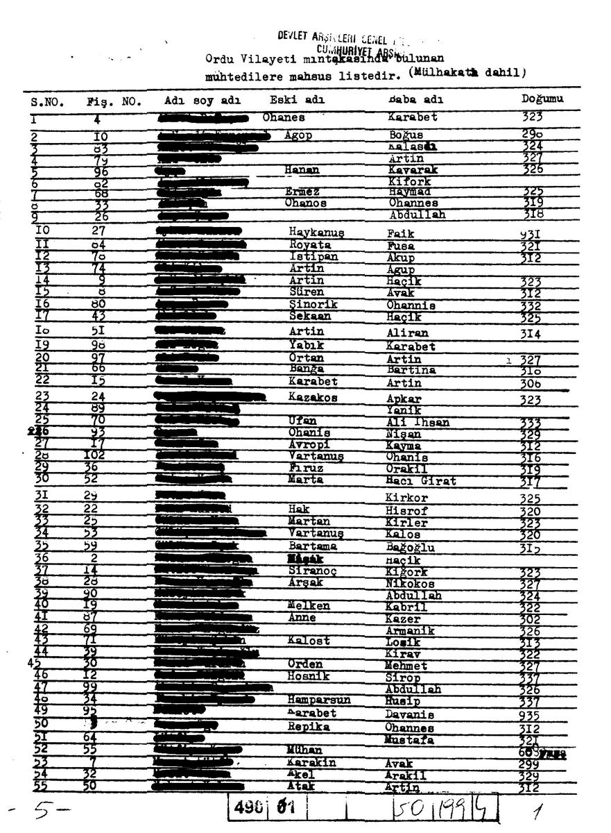 Başkanlık Cumhuriyet Arşivi’nde bulunan bir belgede Ordu ili çevresinde bulunan Ermenilerin kaydını gösteren bir listeye yer verilmiş. Burada hem Ordu ilindeki Ermenilerin listesi (üç sayfa) hem de din değiştirip Müslümanlaşan ya da Müslümanlaştırılan Ermeniler’in listesi (iki sayfa) var.