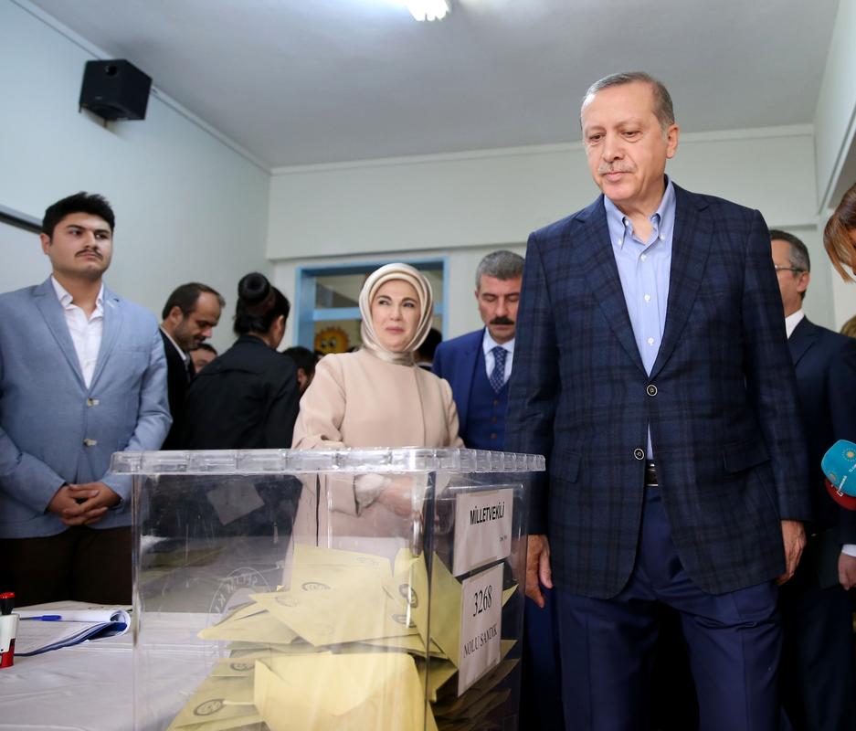 Oy kullanmaya eşi Emine Erdoğan ve kızı Sümeyye Erdoğan ile gelen Erdoğan, “Bu seçim 7 Haziran seçiminden sonra sandıklardan istikrar çıkmayınca, sandıklardan rahat oluşacak bir hükümet çıkmayınca böyle bir seçime gitme zarureti doğdu. Bugün yapılacak olan seçim inanıyorum ki, istikrarın milletimiz ülkemiz için ne kadar hayırlı olduğu ortadaydı. Bugün vatandaşlarımız bunun tercihini yapacaktır. Milli iradenin ortaya koyacağı tavra milletçe hep birlikte saygı duymamız gerekecek”dedi.