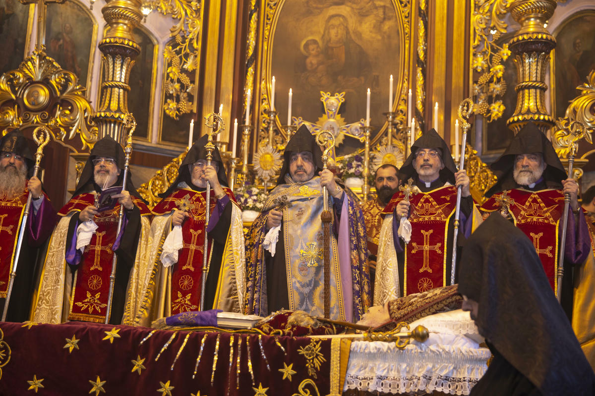 Ayini Kudüs Patriği Başepiskopos Nurhan Manukyan takdis ederken Episkopos Arşag Haçaduryan sundu. Çıkış kortejini ise Başepiskopos Sebuh Çulciyan yönetti. Cenaze törenine Ermeni toplumundan geniş katılım oldu. Tüm kurumlar, vakıf yöneticileri ve halk törende yer alırken Hükümet ve siyasi parti temsilcileri de cenazede hazır bulundular.