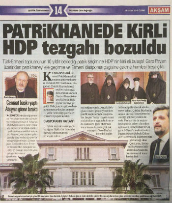 “Son dönemde, devletin Ermeni toplumuna yaklaşımında eski alışkanlıklar yeniden gün yüzüne çıkmıştır. Karanlık odaklar, bazı işbirlikçileri ile masum taleplerimizi manipüle etmekte, Hükümeti ve kamuoyunu yanıltmaktadır. Toplum olarak, geçmişte de bugünküne benzer zor dönemler yaşadık. O dönemlerde, onurlu duruş gösteren ruhanilerimiz ve sivil yöneticilerimiz hep oldu. Onlar hep saygı ile anıldılar. Bugünlerde ise, ruhani alandaki ve vakıf yönetimlerindeki bazı aktörler, ortaya koydukları duruş ile toplumumuzu maalesef utandırmaktadırlar. Patrikhane’ye kayyum olarak atanmak için toplumumuzun çıkarları ayaklar altına alınabilmekte, bazı vakıf yöneticileri koltuklarını korumak adına vakıf seçimlerinin olmaması için uğraş verebilmektedirler. Bu faaliyetlerde bulunanlar, maalesef ki Ermeni toplumuna ihanet etmektedirler.