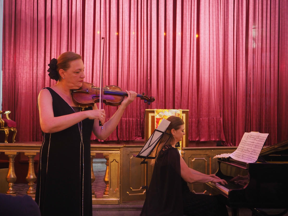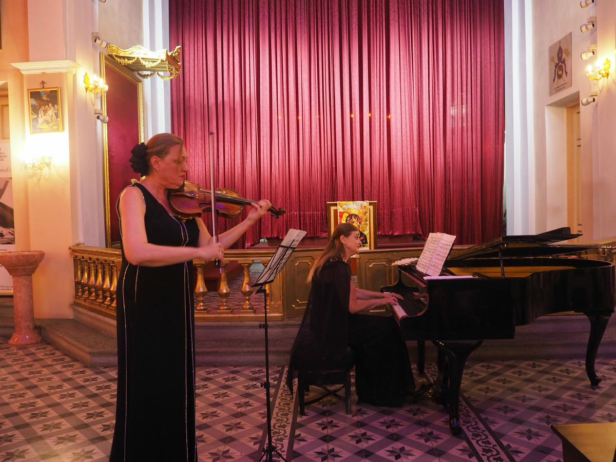 Kilisenin tamamının dolduğu konserde, iki sanatçı, dinleyicilere romantik dönemden çağdaş eserlere uzanan bir repertuvar sundu. Clara Schumann’dan Manuel de Falla’ya, Pablo de Sarasate’den Brahms’a uzanan eserlerin tınıları, kilisenin etkileyici akustiğinde yankılandı.