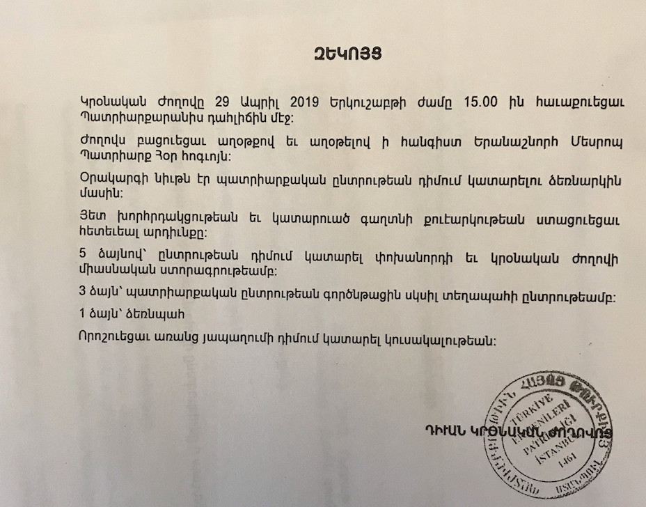 Ruhani Kurul Başkanı Episkopos Maşalyan da Patrik Kaymakamı ile sürecin yürütülmesi gerektiği görüşünü dile getirmişti.