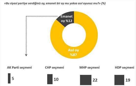 MHP’ye oy veren her 100 kişiden 22’si oyunun emanet olduğunu ifade etti.