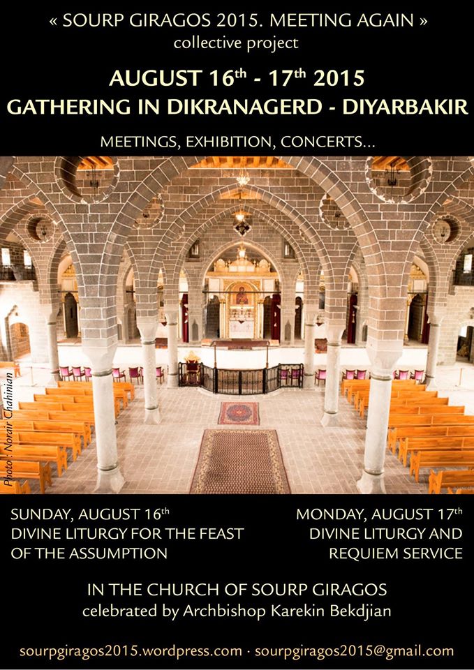 Fransa’dan bir grup gencin ön ayak olmasıyla başlayan proje, Diaspora’dan, Ermenistan’dan ve Türkiye’den Ermenileri bir araya getirmeyi ve en önemli bayramlardan biri olan Surp Asdvadzadzin Yortusu’nu birlikte kutlamayı amaçlıyor. 16 Ağustos’ta Surp Giragos’ta yapılacak olan ayin ve üzüm kutsama törenini ve 17 Ağustos’taki ‘Hokehankist’ duasını, Almanya Ermenileri Ruhani Önderi Başepiskopos Karekin Bekçiyan yönetecek. Aynı gün, kilisenin bahçesinde çeşitli sergiler, toplantılar ve konserler yapılacak.