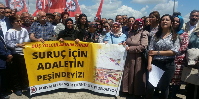 33 gencin hayatını alan, onlarcasının yaralandığı Suruç Katliamı’nın ikinci yıldönümü yaklaşıyor. Yaklaşık bir buçuk sene yerinde sayan dosyanın ilk duruşması 4 Mayıs’ta Urfa, Hilvan’da görüldü. Yargılanan üç sanıktan ikisi İlhami Ballı ve Deniz Büyükçelebi hala kaçakken üçüncü sanık Yakub Şahin mahkeme salonuna SEBGİS’le bile bağlanmadı. Katliamda yaşamını yitirenlerin aileleri ve müdahillik taleplerinde bulunmak isteyen kurum ve kişilerin ifadelerinin alınmasıyla başlayan duruşma 14 Temmuz’a ertelendi.