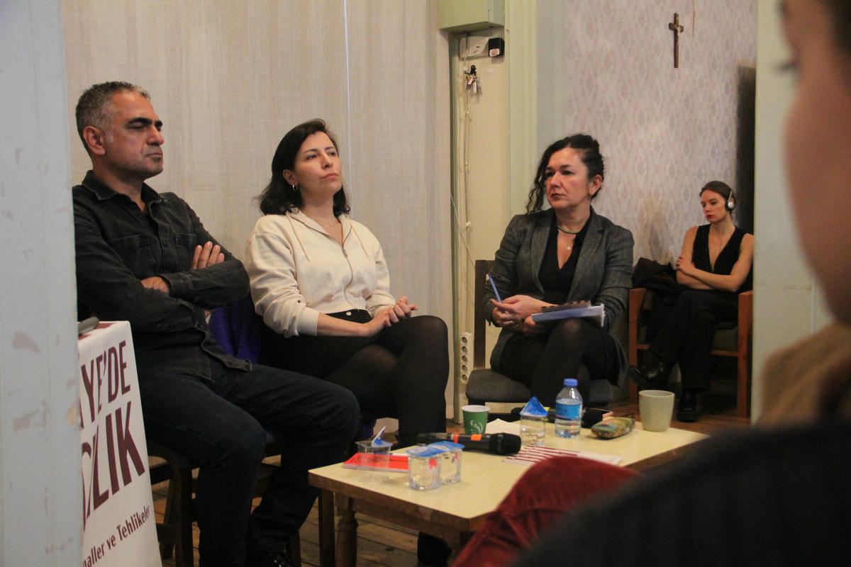 Nazan Üstündağ discussed the grammar of racialisation in the context of the forced migration of Kurds and the enslavement of the female body. Cenk Saraçoğlu drew attention to the parallel labour regime established through the spread of racism through refugees, and how even pogroms are treated as pathology and used to depoliticise problems ranging from health to education. Sharing experiences from the field on the practices of Turkish and Syrian workers working and resisting together, Birtek-Sen General President Mehmet Türkmen complained that explaining the reasons for racism is not enough to eliminate racism. Likewise, Başak Kocadost from the We Want to Live Together Initiative spoke about the right's materialisation of the structural causes of migration and the inability of refugees themselves to take part in the anti-racist struggle for fear of legal sanctions or violence.