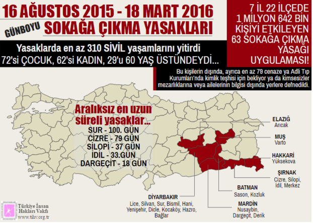 Türkiye İnsan Hakları Vakfı (TİHV), 16 Ağustos 2015 ile 18 Mart 2016 tarihleri arasında ilan edilen sokağa çıkma yasakları ve yaşamlarını kaybeden sivillere ilişkin raporunu yayınladı.