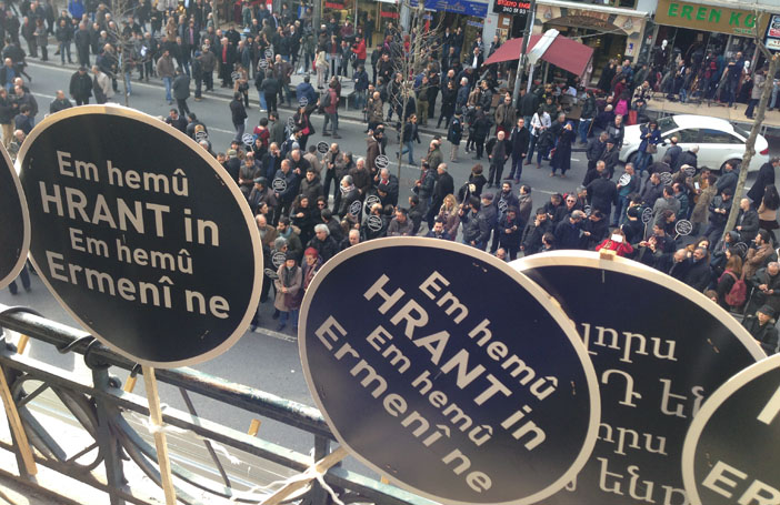 Thousands of people have begun to walk towards the Agos building. The cortege is led by the Dink family, HDP Co-Presidents Selahattin Demirtaş and Figen Yüksekdağ, CHP members of parliament Umut Oran, Sezgin Tanrıkulu and Şafak Pavey.