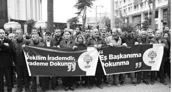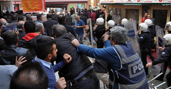 HDP İstanbul İl binası önünde de eylem devam ediyor. Polis kitleye dağılmaları yönünde uyarıda bulunurken eylemciler ‘Vekil irademdir, irademe dokunma’ pankartıyla bina önünde bekleyişe devam ediyor. Polis eylemcilere gaz atıyor.